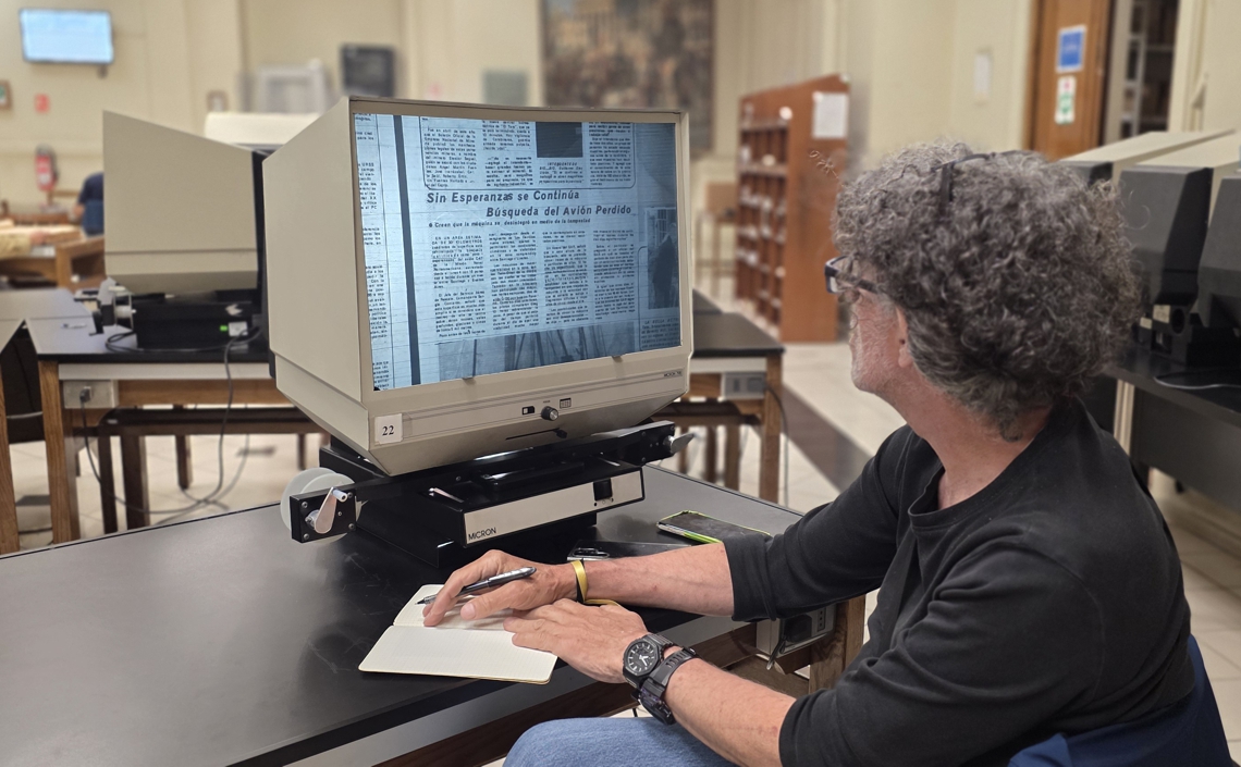 Le séjour à Santiago du Chili a également été l’opportunité de travailler dans le Salón Camilo Henríquez de la Biblioteca Nacional, pour consulter des journaux concernant des avions perdus dans la région.