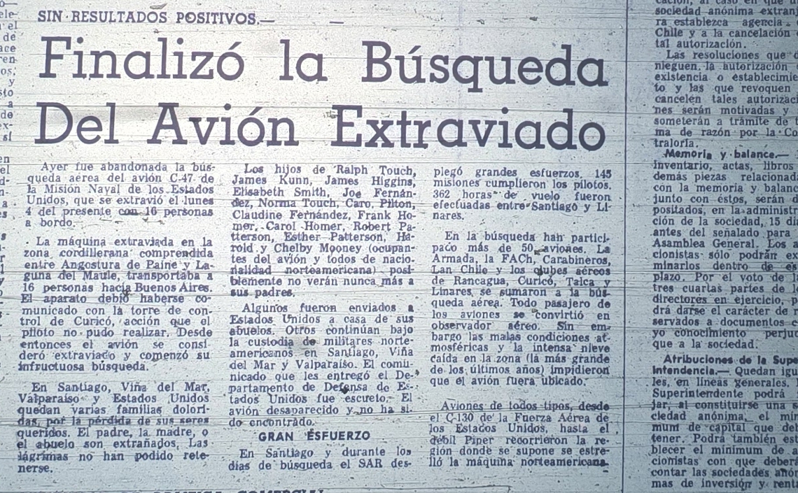 Le Salón Camilo Henríquez de la Biblioteca Nacional de Chile héberge l'archive la plus complète des journaux concernant des avions perdus dans la région des Andes centrales.